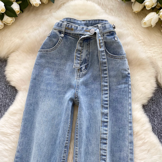 Vintage Loose Straight Ruffle Jeans