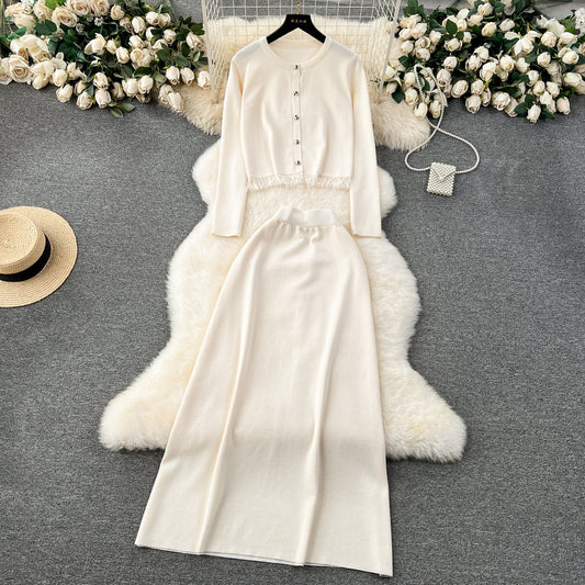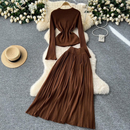 Cardigan&Pleated Skirt Knitted 2Pcs