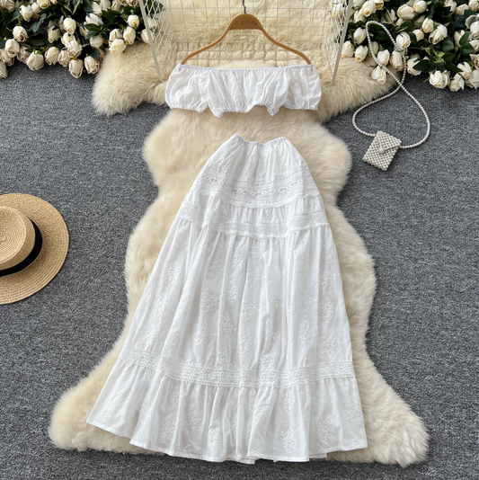 Mini Top & Embroidered Skirt White 2Pcs