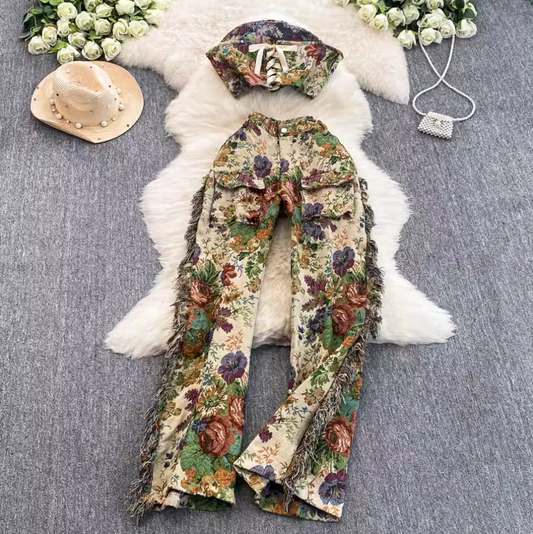 Lace-up Top & Trousers Printed 2Pcs