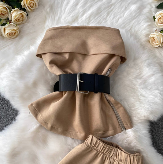 Off-shoulder Chiffon Shirt & Trousers 2Pcs