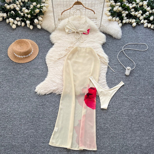 Printed V-neck Camisole & Skirt 3Pcs