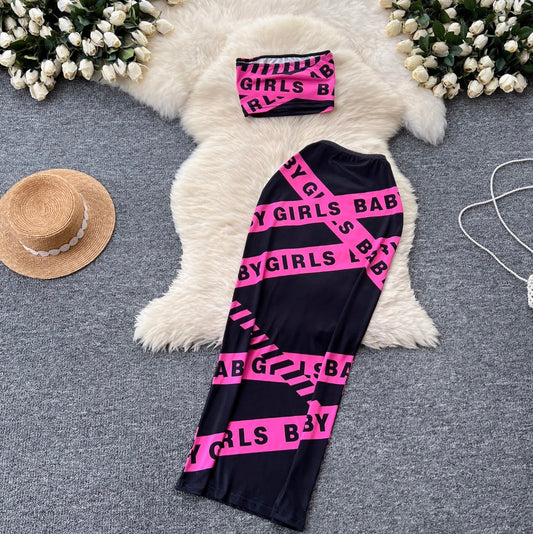 Letter Printed Tank Top & Skirt 2Pcs