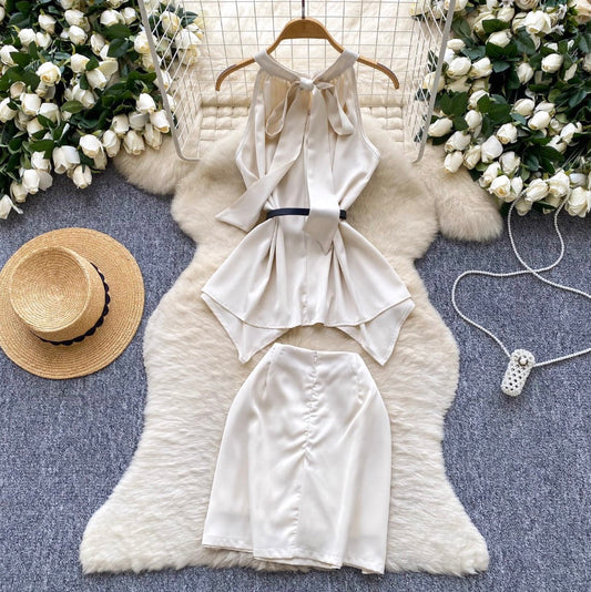 Fairy White Halter Top & Skirt Sets