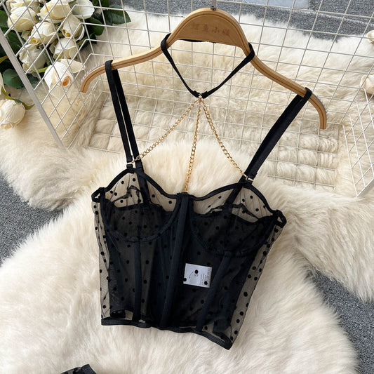 Black Mesh Polka-dot Lingerie 3Pcs