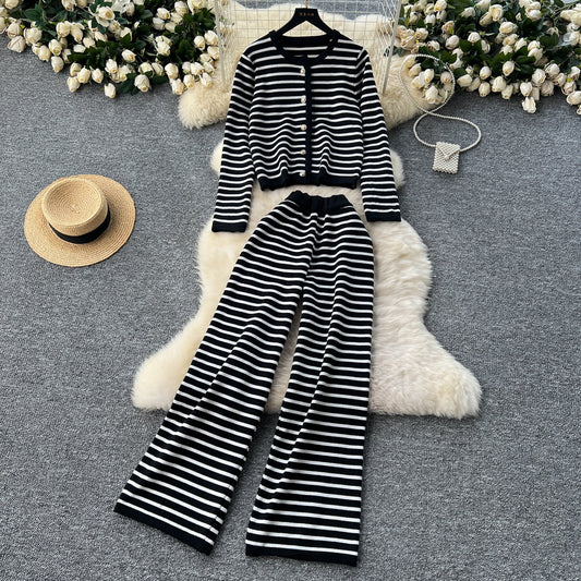 Striped Sweater&Wide-leg Pants 2Pcs