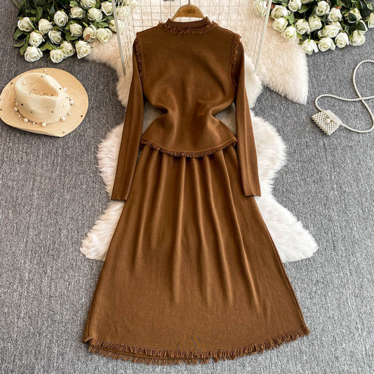 Cardigan&Half-body Skirt Fringed Knit 2Pcs