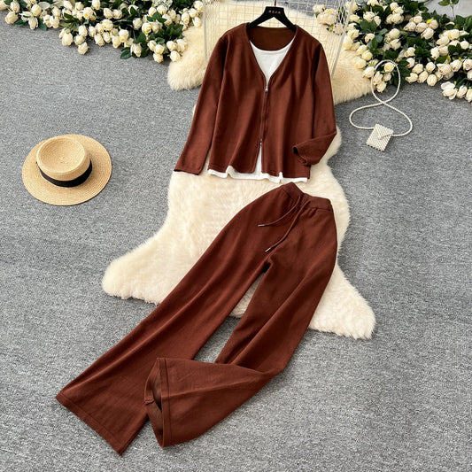 Faux Two-pieces Cardigan & Trousers 2Pcs