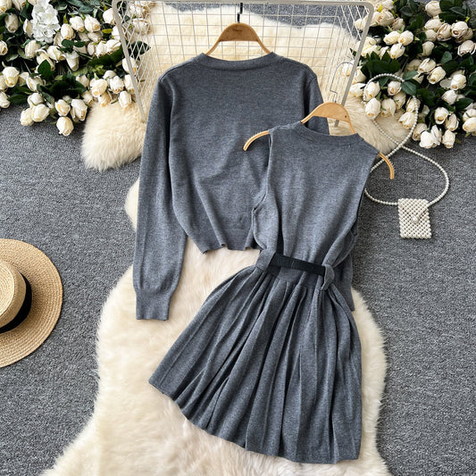 Cardigan&Vest Dress Knitted 2Pcs