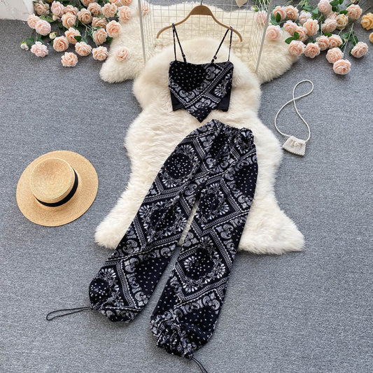 Printed Camisole&Drawstring Pants 2Pcs Set