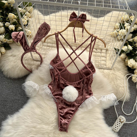 Sexy Pink Rabbit Girl Velvet Jumpsuit