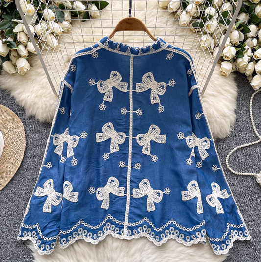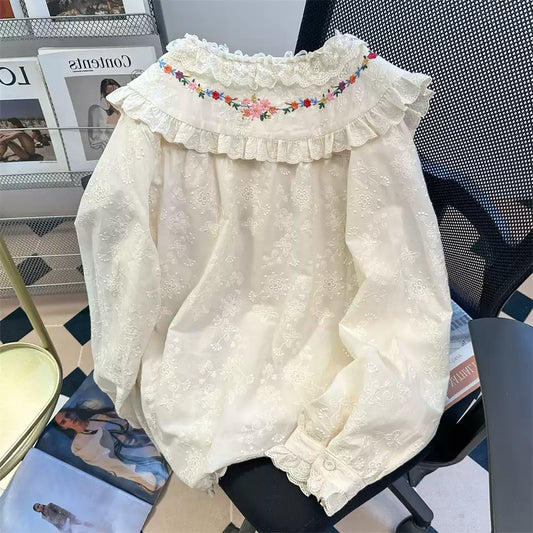 Victorian-Inspired Doll Collar Embroidered Blouse