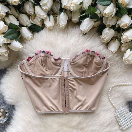 Perlenbesetztes 3D-Blumen-Camisole-Oberteil