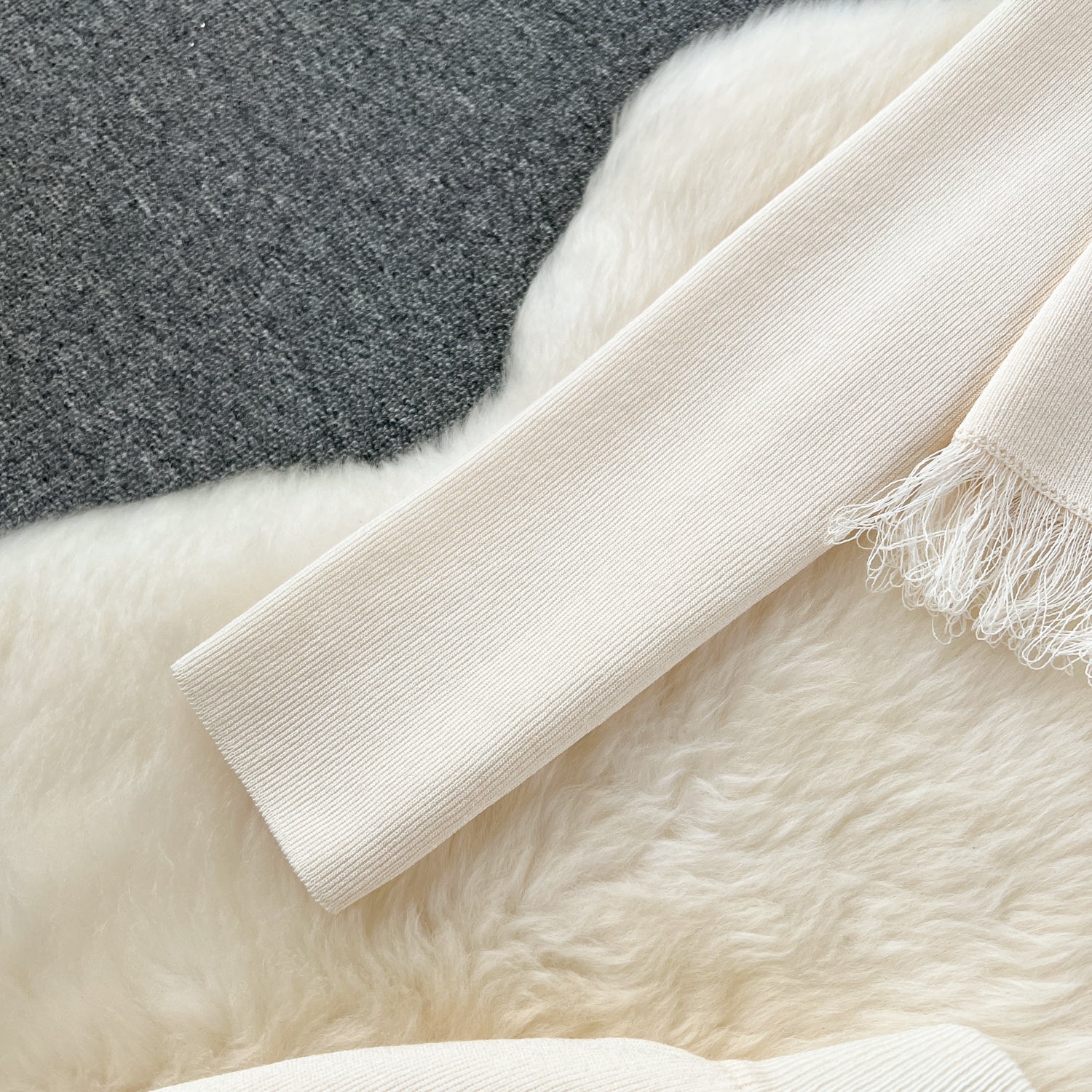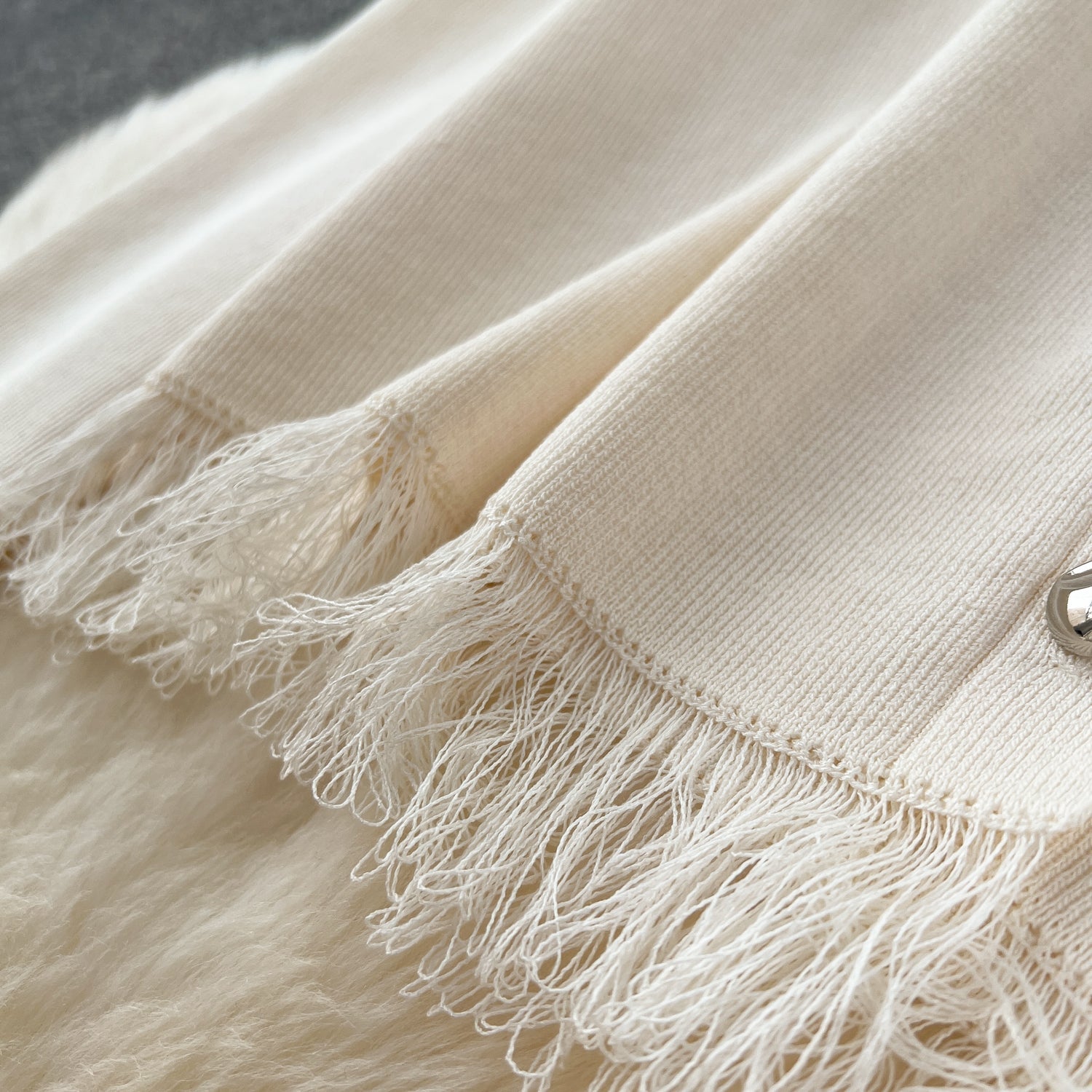 Cardigan&Half-body Skirt Fringed Knit 2Pcs