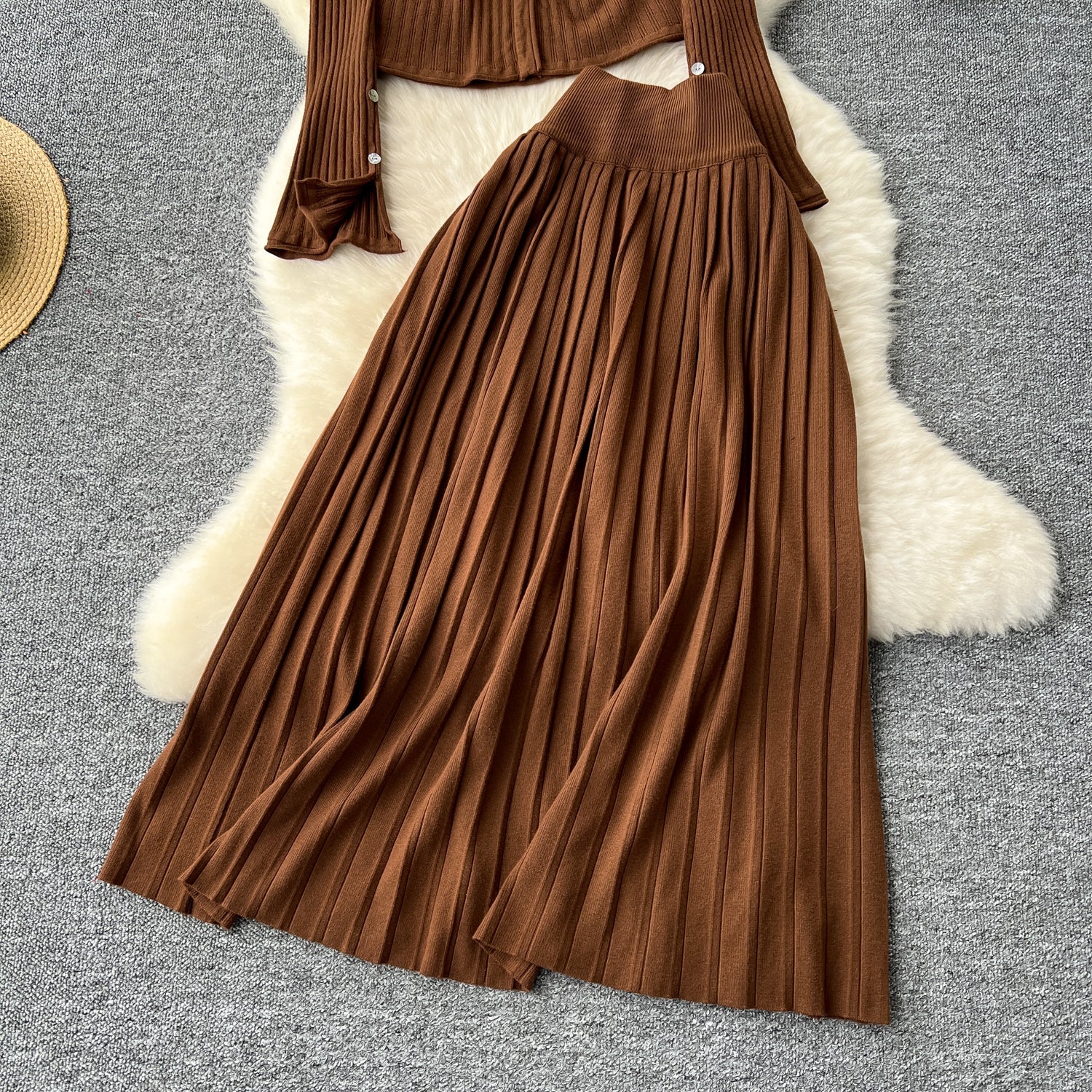 Cardigan&Pleated Skirt Knitted 2Pcs