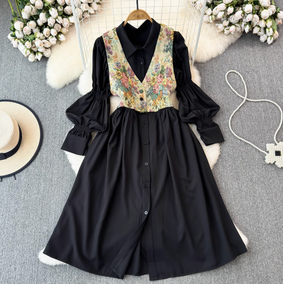 Floral Print Camisole & Button-Up Shirt Dress Set
