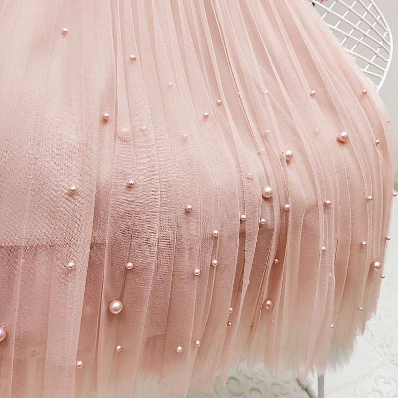 French Retro Beaded Mesh Skirt