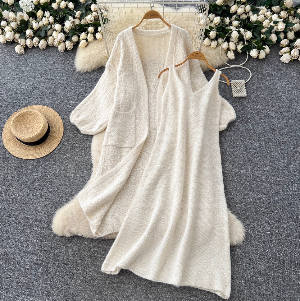 Soft Cardigan & Vest Dress 2Pcs