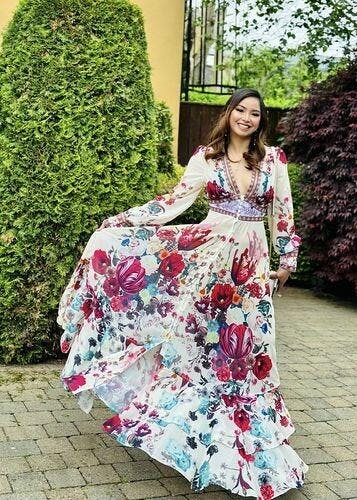 V-neck Floral Maxi Dress